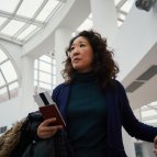 Ее помощница темнокожая ей позвонила в аэропорту и сказала, что был найден труп парня в подъезде, отравленный тем же веществом, что и жертва Велланель в туалете тогда (он духи понюхал, помните?), ну и выяснила, что в этом доме одна из квартир оплачивается с того же банковского счета, что и обучение детей Фрэнка - предателя, то есть той же организацией, вот Ева из Москвы полетела не в Лондон со своими, а в Париж проверить адрес.