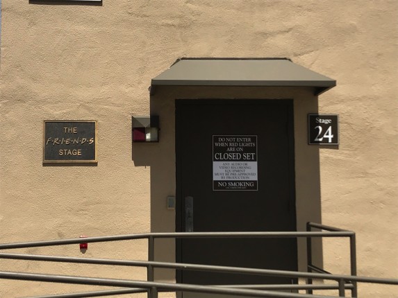 Хотя действие сериала происходит в Нью-Йорке, за десять лет съемок основная команда проекта ни разу не побывала в Большом яблоке. Несколько экстерьерных сцен с видами города сняли без участия звезд. Более того, многие фрагменты на улице, включаю игру в американский футбол между командами Росса и Моники, снимались в павильонах WB. «Друзья» так быстро обрели популярность, что выездные съемки могли бы превратиться в сплошную автограф-сессию. В этой связи команда проекта не стала выбираться в Лас-Вегас, а построила декорации казино прямо в павильонах. Единственным серьезным исключением стало путешествие в Лондон. Команда проекта сняла несколько сцен на натуре, после чего арендовала огромный зал для интерьерных сцен. Билеты за возможность посмотреть на съемки «Друзей» вживую разлетались в Великобритании как горячие пирожки.