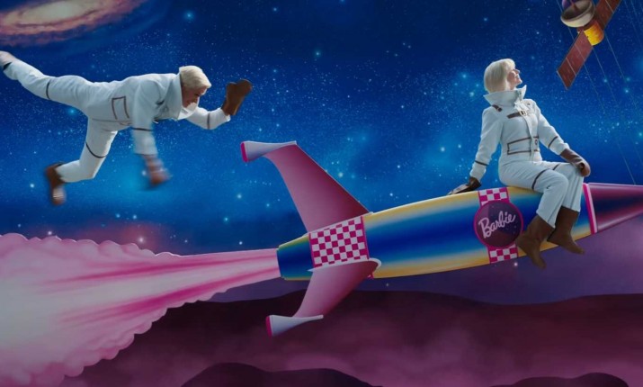 Оказывается, Кену не нужен шлем от скафандра, чтобы дышать в космосе! Видимо, в Барбиленде как раз такая атмосфера, что Барби и Кен могли существовать без воздуха. Еще больше усугубляя нелепость происходящего на экране, они в конце концов оказываются в открытом космосе, где Кен в скафандре мечется в вакууме, пытаясь догнать ракету Барби, на которой она просто сидит верхом, похоже, не особо беспокоясь о том, что почти потеряла своего закадычного друга среди звезд. Интересно, что из всех нарядов этот космический образ — единственный, в котором нет розового цвета, хотя ракета имеет розовые элементы и пламя.